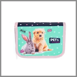 Egyszintes iskolai tolltartó üres. 25 gumiszalagot tartalmaz az írószerek tartásához. A belső szárnyakon átlátszó fóliák vannak az órarendhez.