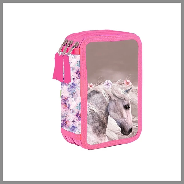 A háromszintes tolltartó az általános iskola 1. osztályos tanulói számára készült. Minden emelet külön cipzárral zárható. Tágas, egyszerű, így könnyen rendet lehet benne tartani.
