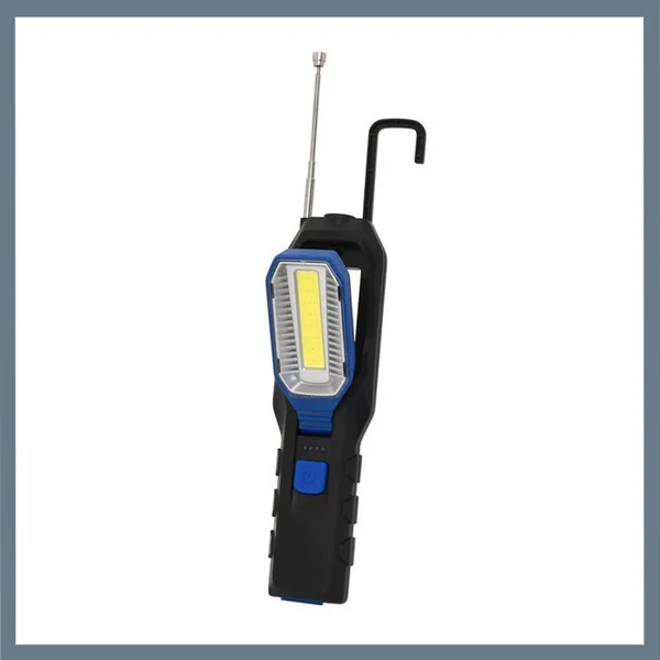 Sokoldalú, újratölthető LED munkalámpa, amely ideális szervizmunkákhoz, barkácsoláshoz, autójavításhoz vagy vészhelyzetekhez. Elöl fókuszált fénnyel, oldalt szórt COB LED világítással és piros SOS jelzőfénnyel rendelkezik. A COB panel dönthető, így a világítás mindig a megfelelő irányba állítható.