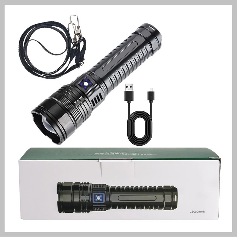 Ultra fényes zseblámpa, 20W, 15000 mAh, Type C töltés holm8385
