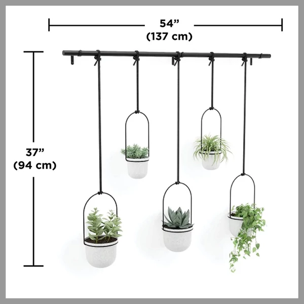 Az Umbra Triflora függőkosár egy praktikus és stílusos megoldás a cserepes növények számára, amely ötvözi a virágcserép és a függönyrúd funkcionalitását. Különösen ideális gyógynövények, kaktuszok és légnövények számára. A Triflora kialakítása lehetővé teszi, hogy választhasson, szeretné-e a kosarat a mennyezetre felfüggeszteni, vagy a falra rögzíteni. Így a növények nemcsak a padlón, hanem akár a szoba más, kihasználatlan részein is elhelyezhetők, zöld növényekkel gazdagítva a teret.