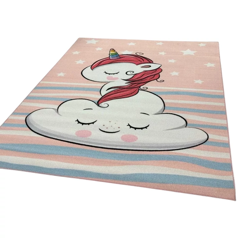 A Unicornis mintás gyerekszőnyeg álomszép kiegészítője minden gyerekszobának! A vidám, pasztellszínű unikornis és felhő motívum nyugodt, barátságos hangulatot teremt, miközben a puha tapintás és a biztonságos anyaghasználat garantálja a kényelmes játékidőt.