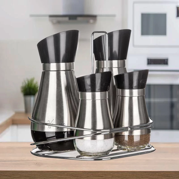 borsszóróval, olaj- és ecettartókkal az asztal dísze