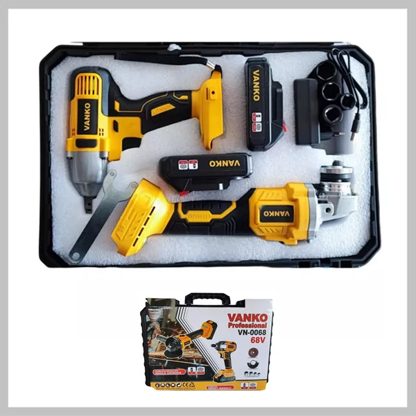 Vanko akkumulátoros kerékkulcs és sarokcsiszoló szett kofferben 68V VN-0068