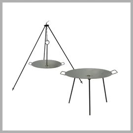 3 lábon álló korongként – ideális közvetlen tűz fölötti sütéshez.