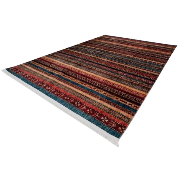 A Velvet 923 szőnyeg a hagyományos keleti motívumokat ötvözi a modern színvilággal. Gazdag vörös, kék és barna árnyalatai meleg, otthonos hangulatot teremtenek, míg rövid szálú, kellemes tapintású felülete kényelmet és eleganciát biztosít minden helyiségben.