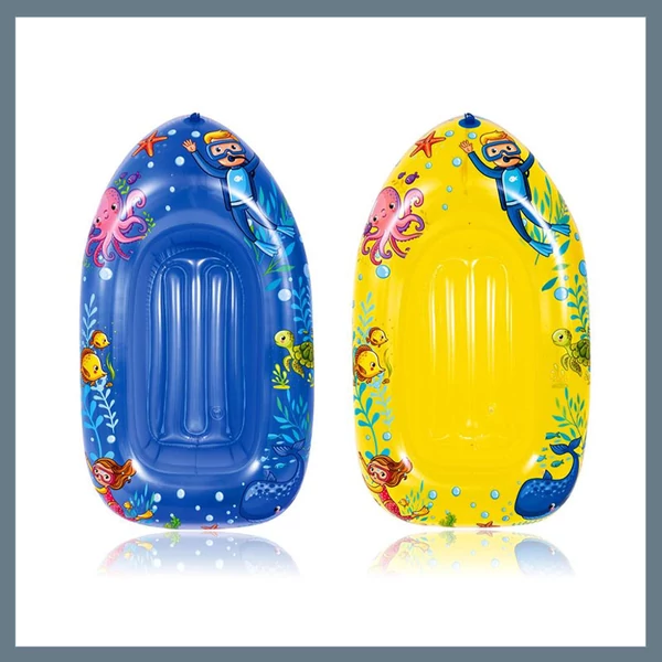 A gyerekek számára készült OCEAN WORLD felfújható csónak tengeri mintákkal a vízi játékokhoz ideális. A csónak méretei 112 x 70 cm, a csónak elején egy kötéllel rögzíthető fogantyú található. A termék 3-6 éves gyermekek számára ajánlott.