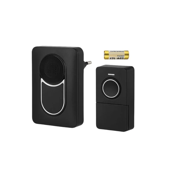 Ez a modern, fekete színű vezeték nélküli ajtócsengő praktikus és megbízható megoldás otthonok, irodák és üzletek számára. A vezeték nélküli kialakításnak köszönhetően a telepítés egyszerű – nincs szükség kábelekre vagy fúrásra.