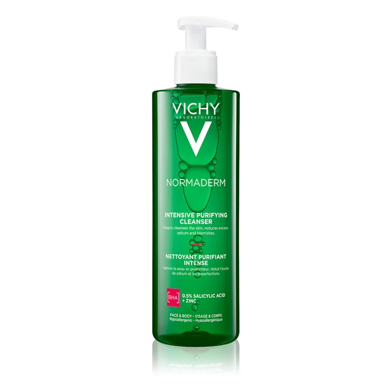 A Vichy Normaderm Intensive Purifying Cleanser egy mélytisztító, habzó arclemosó, amely kifejezetten zsíros, problémás és aknéra hajlamos bőrre lett kifejlesztve. Formulája hatékonyan távolítja el a felesleges faggyút, a szennyeződéseket és a sminkmaradványokat, miközben segít megakadályozni a pórusok eltömődését és a bőrhibák kialakulását.