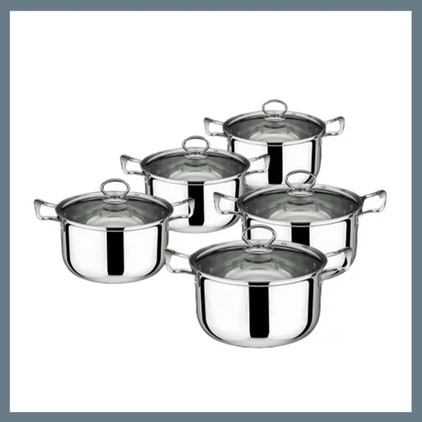 Ez a 10 részes rozsdamentes acél edénykészlet kiváló választás mindennapi főzéshez. Hőálló üvegfedőkkel rendelkezik, amelyek lehetővé teszik az ételek folyamatos ellenőrzését főzés közben. Tartós, könnyen tisztítható, és modern kialakításának köszönhetően minden konyhába illik.
