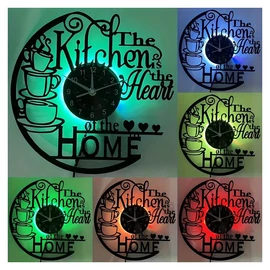 Vintage stílusú falióra kávézós dizájnnal és LED háttérvilágítással