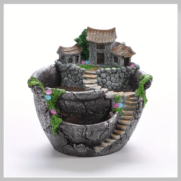 Ez a kiváló minőségű gyantából készült virágcserép tökéletes választás mindazok számára, akik szeretik a természetes, mégis tartós és esztétikus megoldásokat. Rusztikus megjelenésével otthona, irodája vagy kertje különleges díszévé válhat.