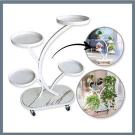 Virágtartó, polc, kerekes fém fehér virágtartó SZ43B