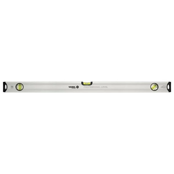 Eloxált alumínium profilból készült vízmérték, három libellával a függőleges, vízszintes és 45°-os szögek jelzésére.