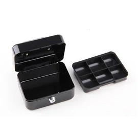 A kazetta kulccsal zárható, a csomag 2 darab kulcsot tartalmaz. Belsejében kivehető műanyag érmetálca található, amely segít az aprópénz rendszerezett elhelyezésében.