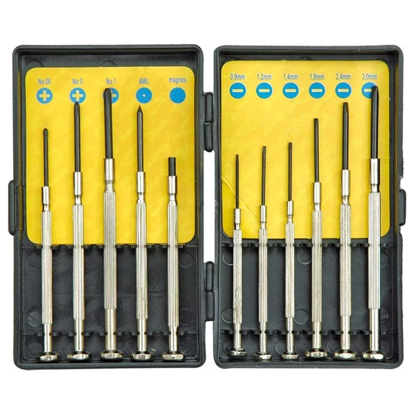 Lapos csavarhúzók: 0.9; 1.2; 1.4; 1.8; 2.4; 3.0 mm