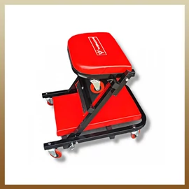 Vesatile: Ez a 2 az 1-ben szerelői ellenőrző kocsi egyetlen gombnyomással átalakítható alacsony, 6 hüvelykes lánctalpas ülésből magas, 18 hüvelykes görgős üléssé - szerszámok nélkül!