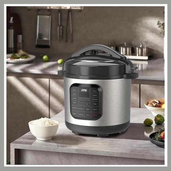 A Winning Star ST-9314 elektromos kukta kiváló társ a gyors, egészséges és energiahatékony főzéshez. A nagy, 8 literes kapacitás lehetővé teszi nagyobb adag ételek elkészítését, ideális családoknak vagy vendéglátásra is. A beépített digitális kijelzővel ellátott vezérlőpanel könnyű kezelhetőséget biztosít, míg az előre beállított programok leegyszerűsítik a főzési folyamatot.