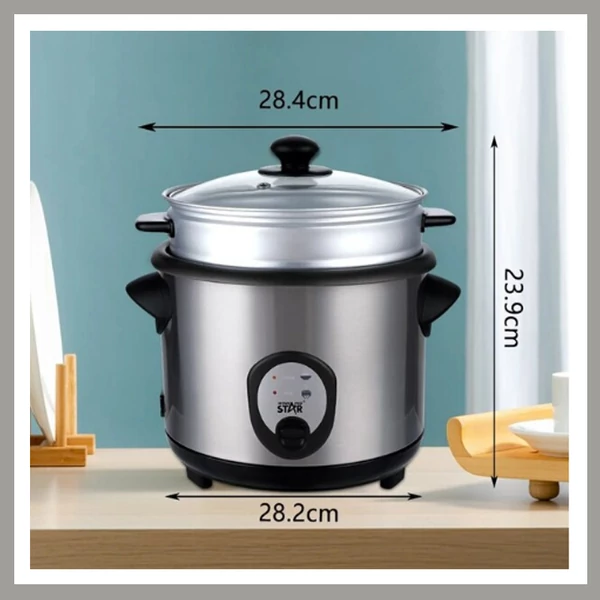 A WINNING STAR ST-9351 egy elegáns, rozsdamentes acélházzal ellátott elektromos rizsfőző, amely 1,8 literes kapacitásával ideális kisebb családok vagy mindennapi háztartási használatra. A 700 wattos teljesítmény gyors és hatékony főzést biztosít, miközben az automatikus melegen tartó funkció gondoskodik róla, hogy az étel fogyasztásig friss maradjon.