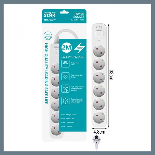 Winning Star hálózati elosztó 6 aljzat, 1 kapcsoló ST-1016