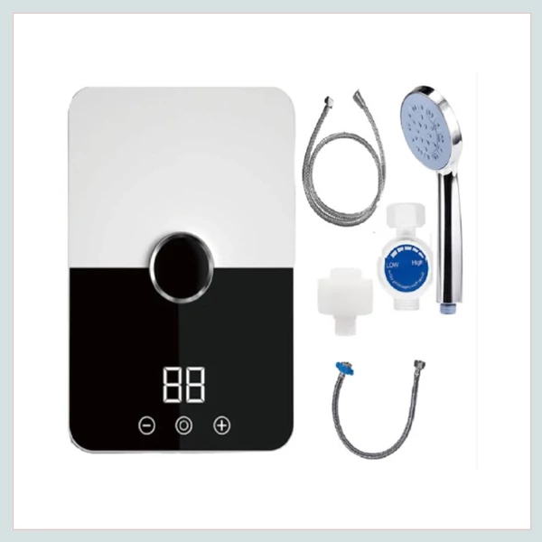 Worthair digitális hőmérséklet-szabályozós átfolyós vízmelegítő csaptelep zuhanyfejjel 5500W RYK-001