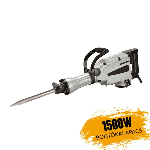 Felülmúlhatatlan erő! 1500 W-os teljesítményű bontókalapács. Kiváló és tartós eszköz. 360°-os forgatható ergonomikus csúszásgátló elülső markolat minden irányba megfelelő hozzáférést kínál az adott munkához. Kialakítás jelentősen csökkenti a folyamatos munkavégzés okozta megterhelést. Kisipari felhasználásra alkalmas beton, tégla és egyéb kőzet bontására, vésésére.