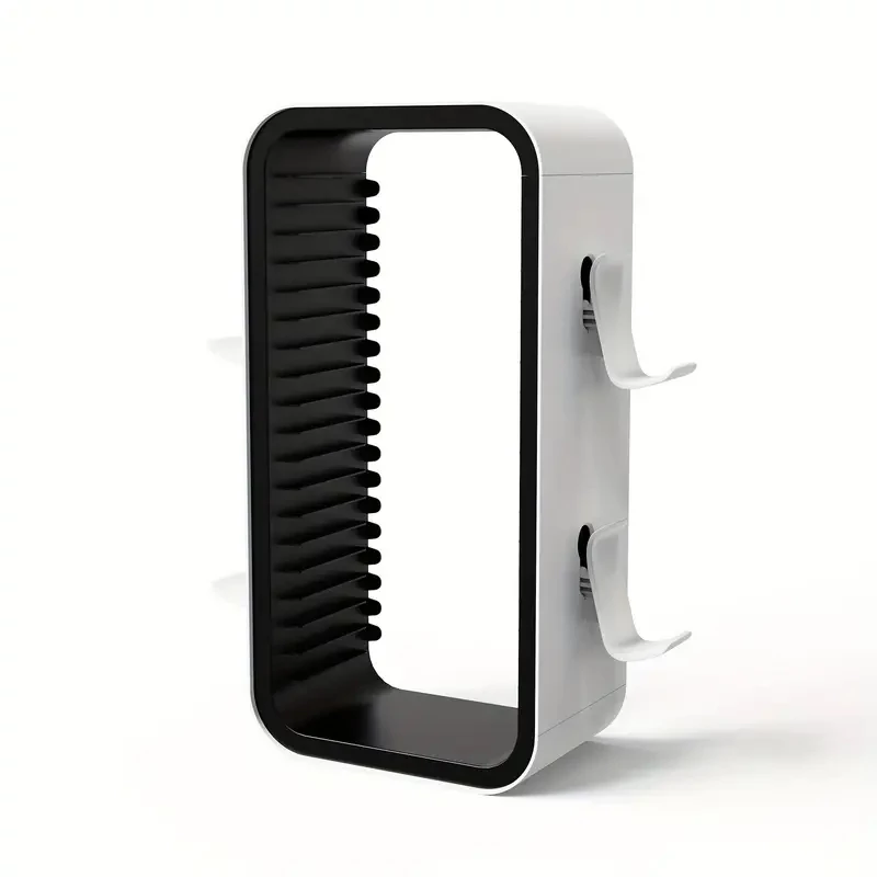 Ez a praktikus tároló állvány kifejezetten játékosok számára készült, hogy rendezetten és könnyen hozzáférhetően tárolhassák játéklemezeiket és kontrollereiket. Az állvány akár 18 darab CD/DVD lemez tárolására alkalmas, oldalsó konzoljai pedig levehetők, így két játékvezérlő is elhelyezhető rajta.