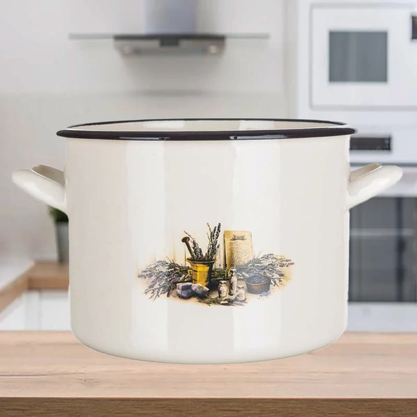 0,8 mm, 2 rétegű zománcozott belső és külső bevonat dekorral, hengerelt éllel.