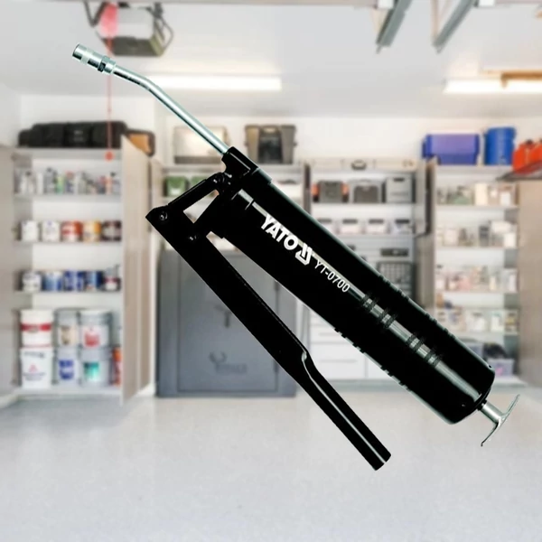 A Yato márkájú karos zsírzó a mechanikus elemek, például tengelyek, csapok, csapágyak nagynyomású kenésére szolgáló eszköz.