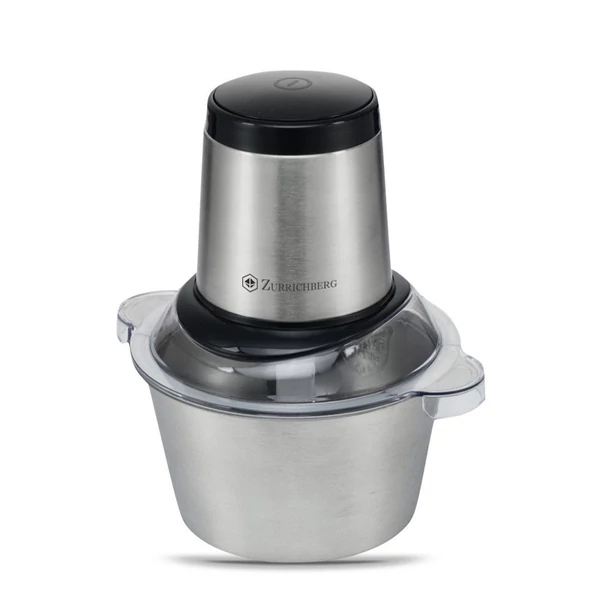Aprítógép 1,8 l Zurrichberg ZBP-7610 egy praktikus aprító a konyhájában. Bármilyen kemény alapanyag vágására használható, mivel a 300 W-os motor bármit elbír. A készülék négy borotvaéles rozsdamentes pengével működik, amelyek nagyon precíz vágást biztosítanak, használatukkor nem törik össze az ételt, hanem darabokra vágják.